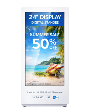 The 24-Inch Floor Standing Digital Signage is a premium commercial display solution designed to deliver powerful visual communication in high-traffic environments. With its modern floor-standing design and professional-grade components, it is ideal for retail stores, malls, showrooms, hotels, cafés, hospitals, and corporate spaces.